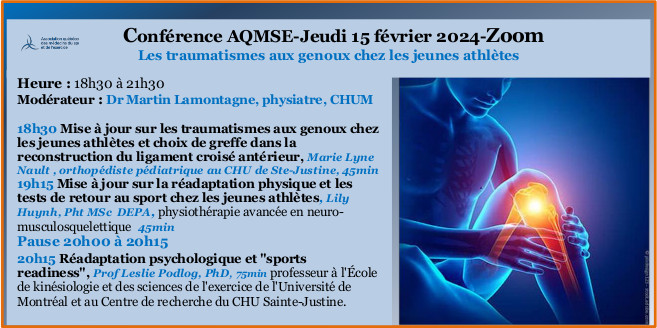 Formation AQMSE du 15 février 2024: Les traumatismes aux genoux chez les jeunes athlètes