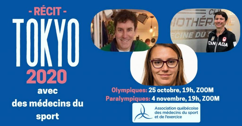 Cet automne, l’AQMSE a organisé deux entrevues en direct sur Zoom pour vous partager les faits saillants de l’expérience de médecins québécois qui ont fait partie de l’équipe médicale canadienne aux Jeux olympiques et paralympiques de Tokyo à l’été 2021. Voici l’enregistrement de ces entrevues animées par Philippe Brochu, Philippe Ouellet et Alexandre Lavigne.